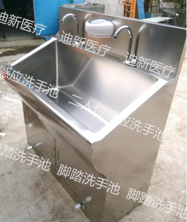 迪新新型不銹鋼醫(yī)用洗手池選用感應(yīng)式、膝碰式和腳踏式三種出水方式,無(wú)需手接觸有效的解決了這一難題。迪新不銹鋼醫(yī)用洗手池采用優(yōu)質(zhì)304不銹鋼雙層制作而成,經(jīng)久耐用。槽體設(shè)計(jì)依據(jù)人體工程學(xué)原理,使用舒適。全不銹鋼槽體,整體無(wú)縫設(shè)計(jì),極易清潔。紅外感應(yīng)出水系統(tǒng)配有醫(yī)用水龍頭,反應(yīng)靈敏,抗干擾性強(qiáng),極大降低了水資源的浪費(fèi)。自動(dòng)給液器,使用方便衛(wèi)生。漏電保護(hù)設(shè)計(jì),保證了操作人的使用安全。槽體中間特殊靜音處理,造型美觀大方,使用方便?啥ㄖ铺厥庖(guī)格,也可根據(jù)客戶要求配置熱水器和烘干器。