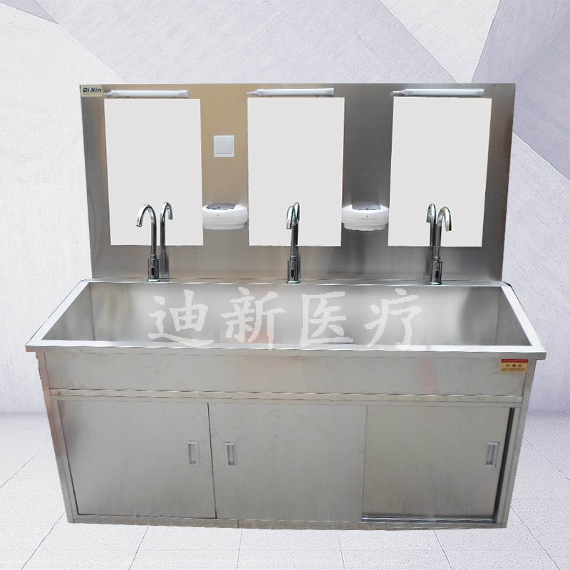手衛(wèi)生是預(yù)防和控制醫(yī)院感染、保障病人和醫(yī)務(wù)人員安全簡(jiǎn)單經(jīng)濟(jì)有效的措施。因此,全國(guó)各家醫(yī)院對(duì)手衛(wèi)生給予了高度的重視,采取了各種積極有效的措施來(lái)促進(jìn)醫(yī)務(wù)人員的衛(wèi)生,以預(yù)防和降低醫(yī)院感染的發(fā)生,提高醫(yī)療的質(zhì)量。 傳統(tǒng)普通洗手池配備手觸式水龍頭,在洗手過(guò)程中容易造成手的二次污染以及手與水龍頭之間的交叉感染。迪新新型不銹鋼醫(yī)用洗手池選用感應(yīng)式、膝碰式和腳踏式三種出水方式,有效的解決了這一難題。 迪新新型不銹鋼醫(yī)用洗手池的材質(zhì)特點(diǎn)主要有: 1、采用優(yōu)質(zhì)304不銹鋼雙層制作,一體化無(wú)焊縫池體,極易情節(jié),經(jīng)久耐用; 2、漏電保護(hù)設(shè)計(jì),保證了操作人的使用安全; 3、槽體中間特殊靜音處理,造型美觀大方,使用比較方便; 下面迪新小編簡(jiǎn)單的介紹下本公司的感應(yīng)式洗手池、膝碰式洗手池、腳踏式洗手池的主要結(jié)構(gòu)組成: 一、迪新感應(yīng)式洗手池的主要結(jié)構(gòu)組成: 1、配備感應(yīng)水龍頭,紅外感應(yīng)系統(tǒng)靈敏,抗干擾性強(qiáng);不浪費(fèi)水源; 2、配備自動(dòng)皂液器,使用方便衛(wèi)生; 3、有低背板和豪華高背板可供選擇,高背板可配置美容鏡; 4、此外,按照客戶的要求可選配熱水器和烘手器。 二、膝碰式洗手池的主要結(jié)構(gòu)組成: 1、配置304不銹鋼鵝頸水龍頭,造型美觀; 2、膝碰開關(guān)出水方便; 3、配備自動(dòng)皂液器,使用方便衛(wèi)生; 4、有低背板和豪華高背板可供選擇,高背板可配置美容鏡; 5、此外,按照客戶的要求可選配熱水器和烘手器。 三、腳踏式洗手池的主要結(jié)構(gòu)組成: 1、安裝腳踏開關(guān),主要使用腳踏出水,出水方便; 2、配置304不銹鋼鵝頸水龍頭,造型美觀; 3、配備自動(dòng)皂液器,使用方便衛(wèi)生; 4、有低背板和豪華高背板可供選擇,高背板可配置美容鏡; 5、此外,按照客戶的要求可選配熱水器和烘手器。 歡迎來(lái)電咨詢,服務(wù)熱線:0523-86184406/13961011710